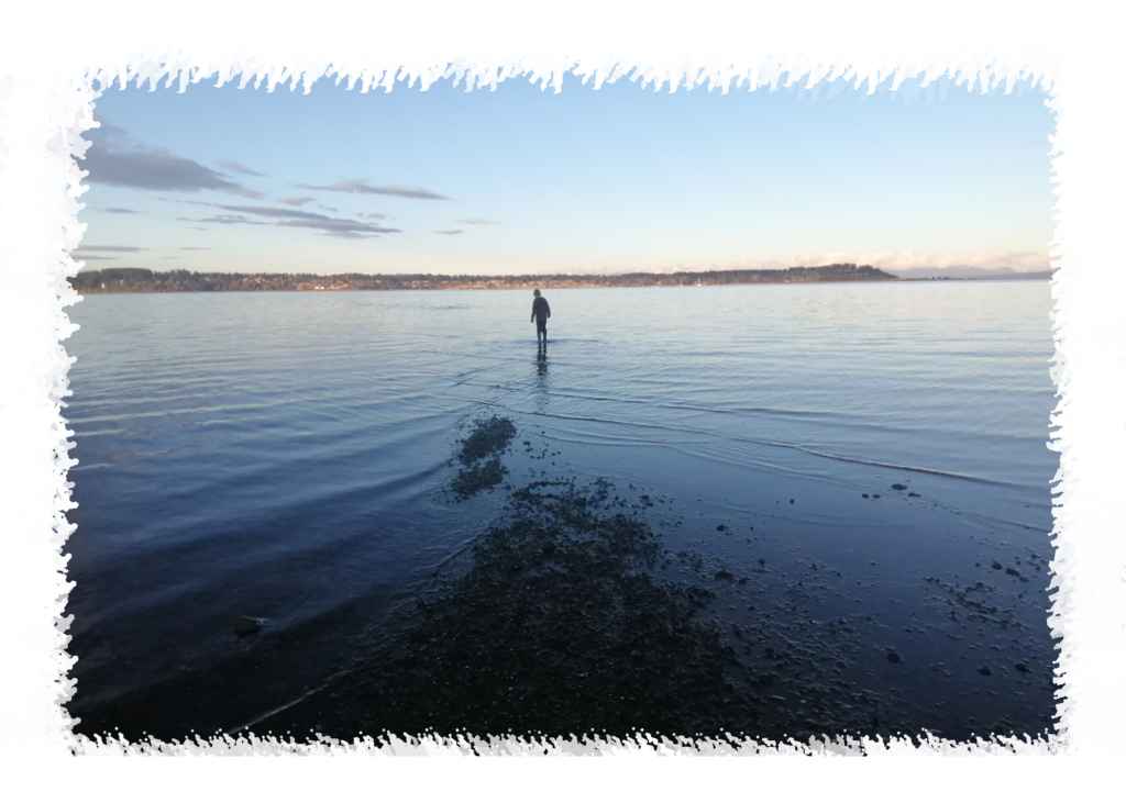 This is a photo. I often take children to a place on the ocean where they can walk a long way into the water and feel like they are walking on water.